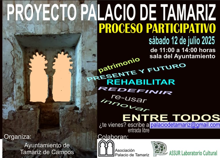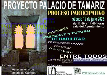 El sábado 12/07/2025 nos juntamos para avanzar en el Proceso Participativo Palacio de Tamariz, organizado por el Ayuntamiento de Tamariz de Campos, para diseñar entre todos el futuro de este antiguo palacio, al servicio de las gentes de Tamariz y la comarca.