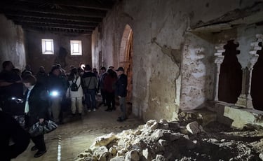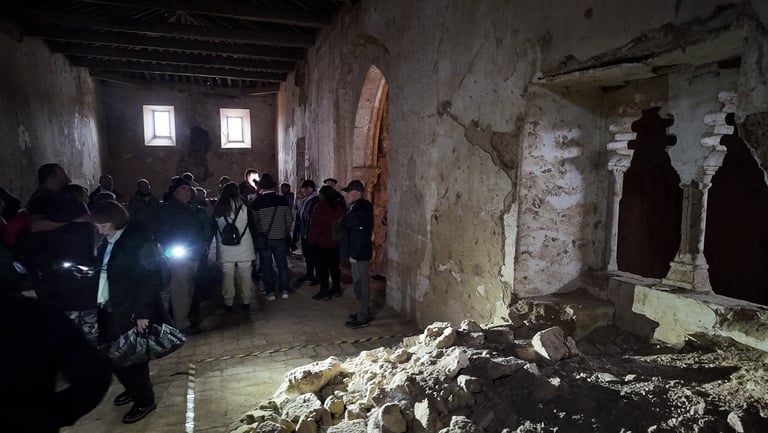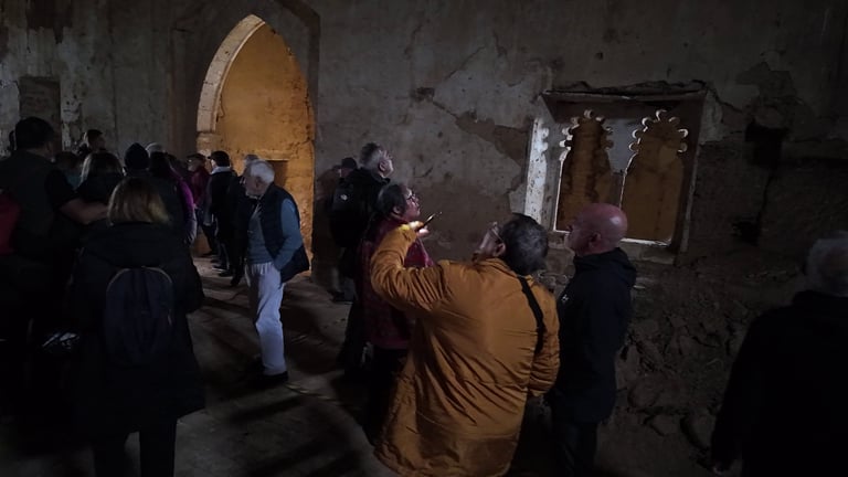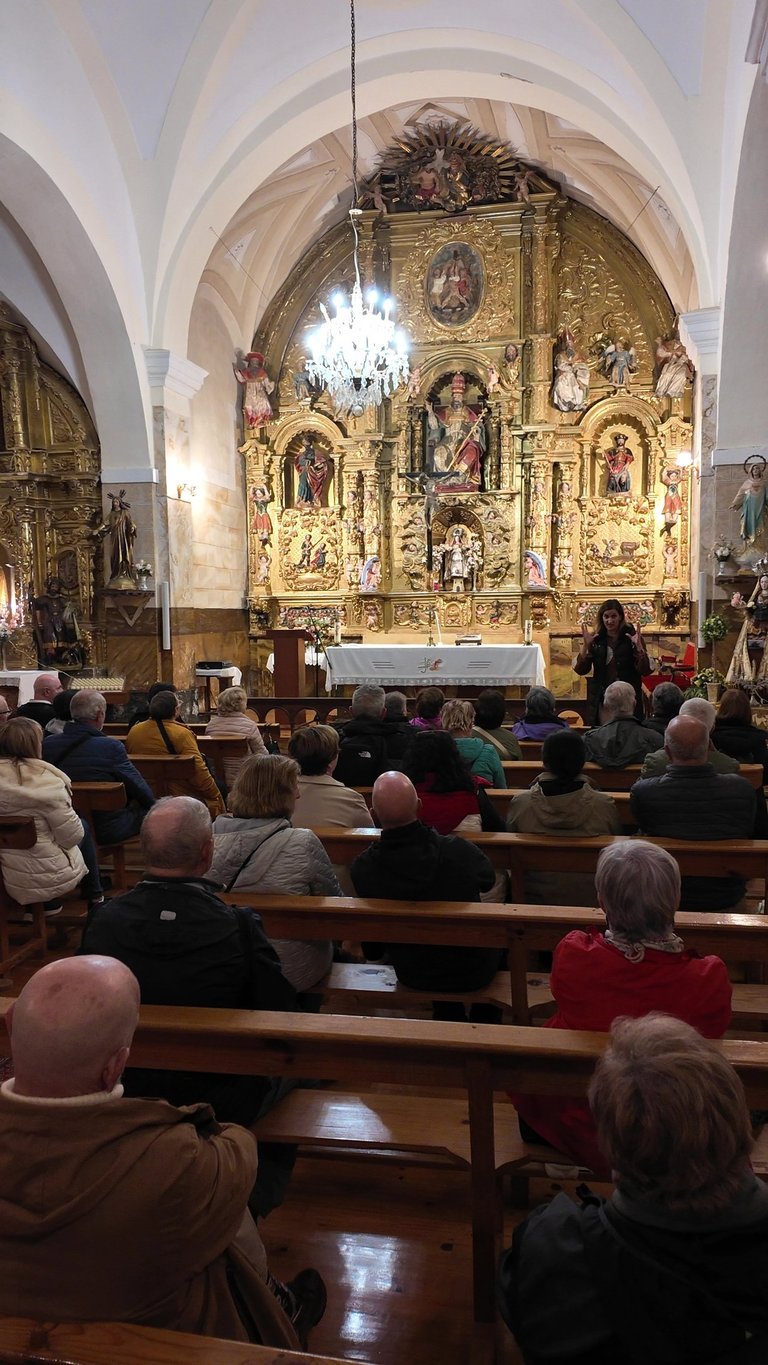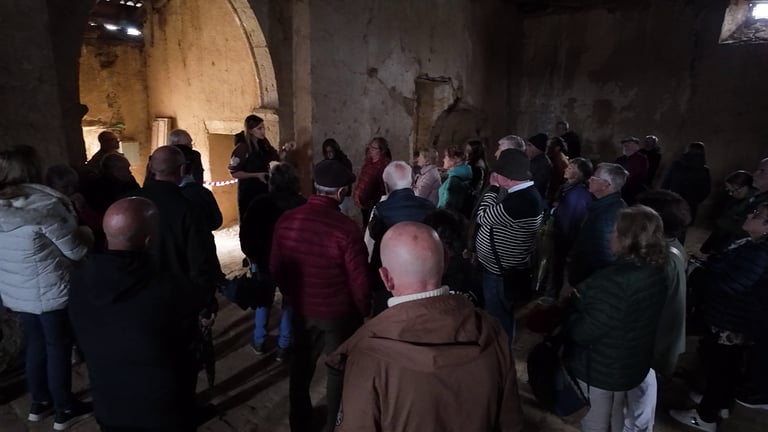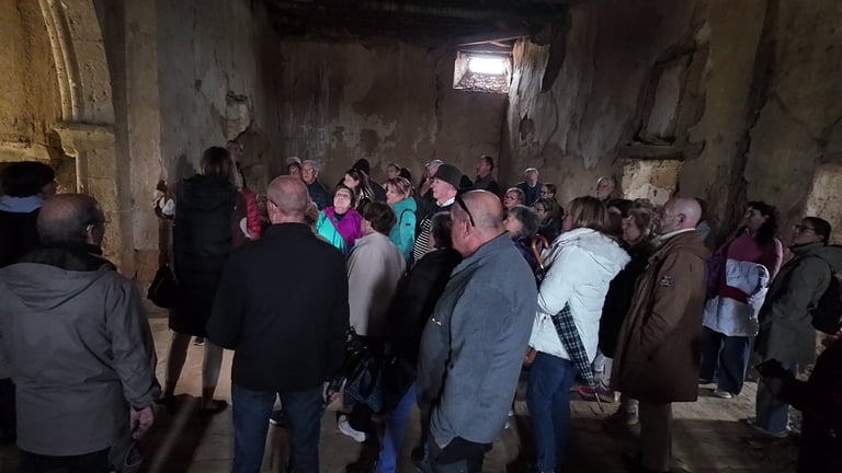 Los 50 participantes pudieron conocer la historia del Palacio, ver las ventanas lobuladas mudéjares, la portada gótica, el artesonado y los pilares del antiguo pórtico del Palacio, así como los retablos, órgano barroco, pila bautismal, tallas y pinturas que se encuentran en la iglesia de San Pedro de Tamariz.